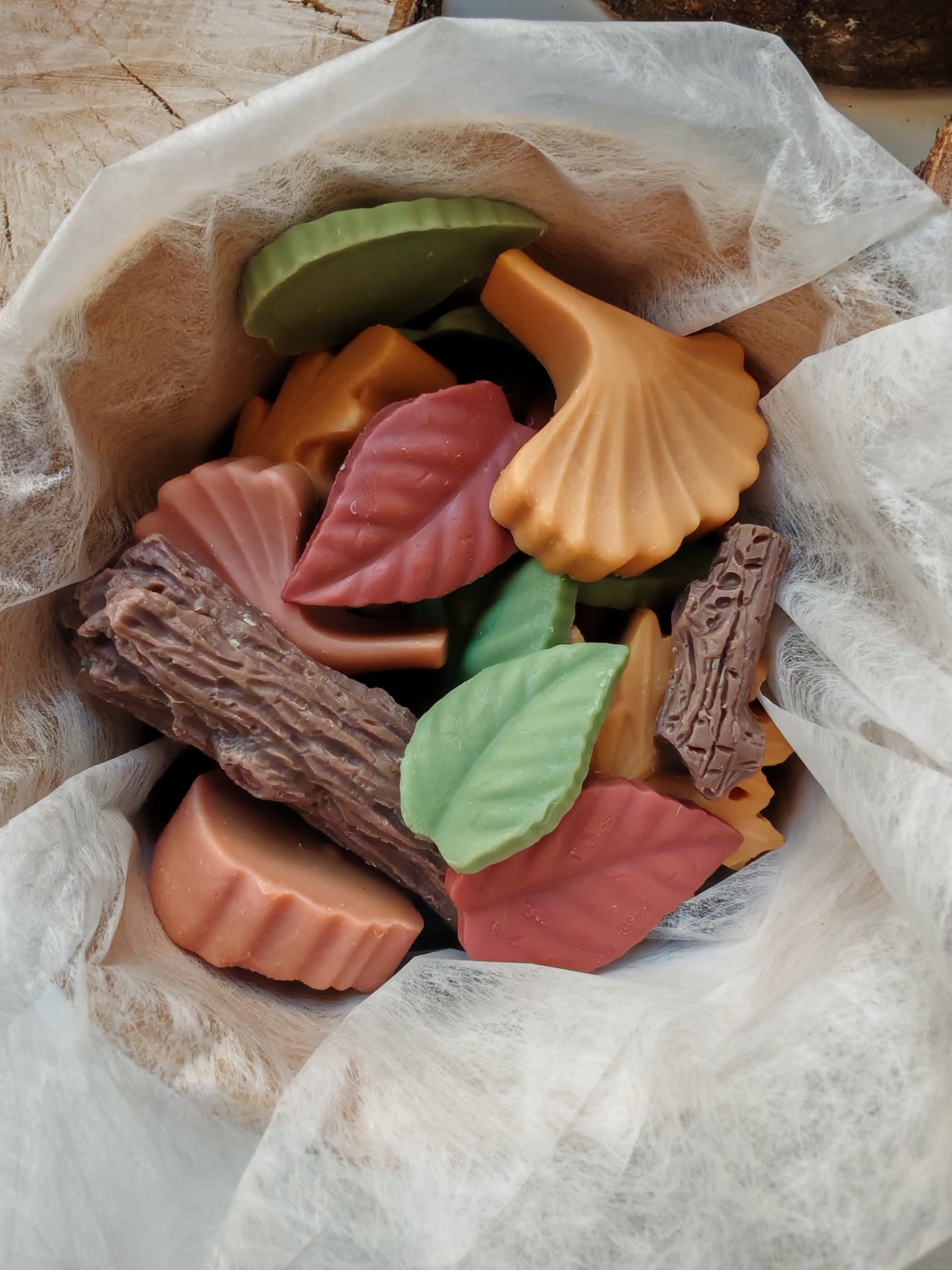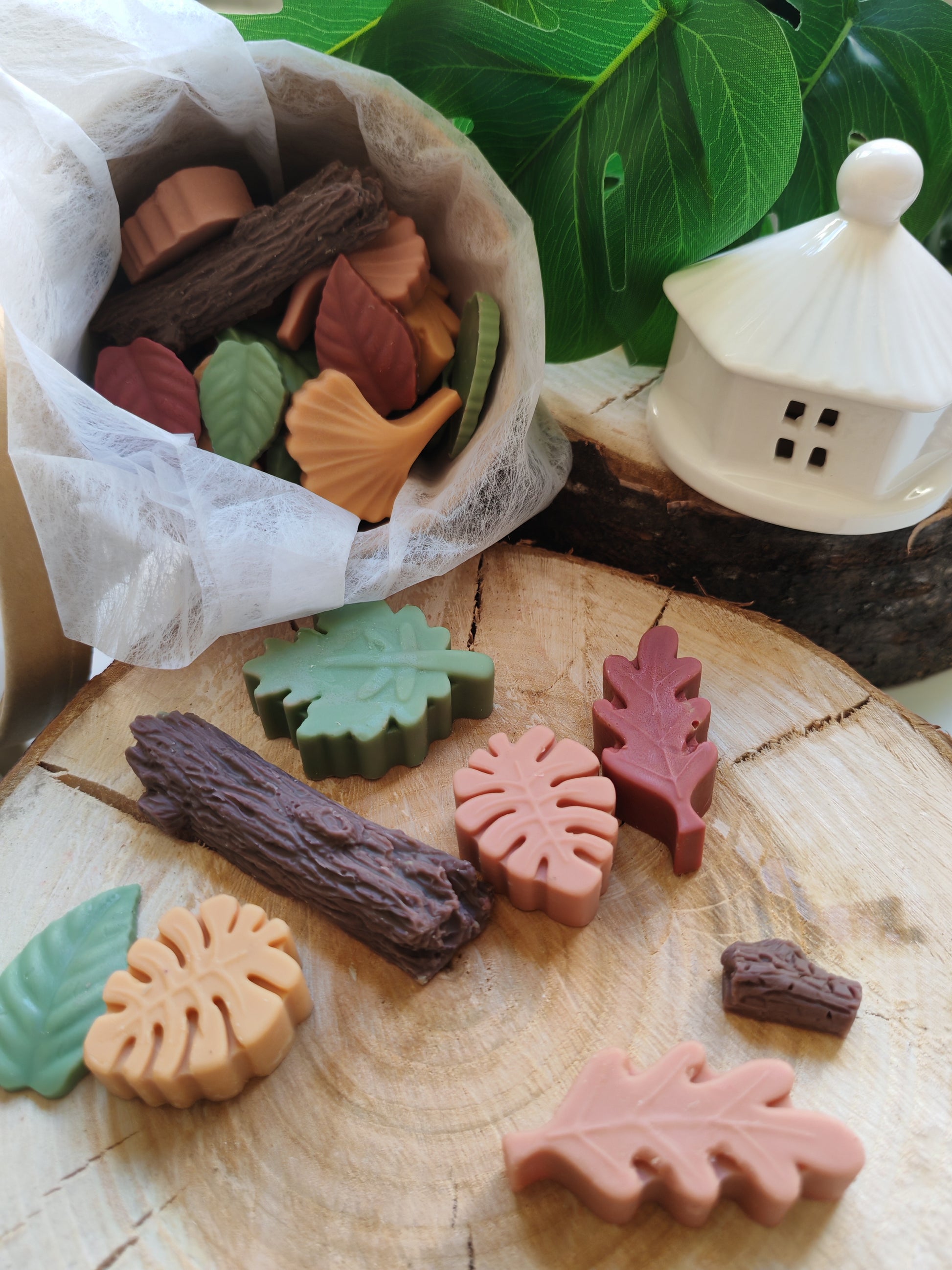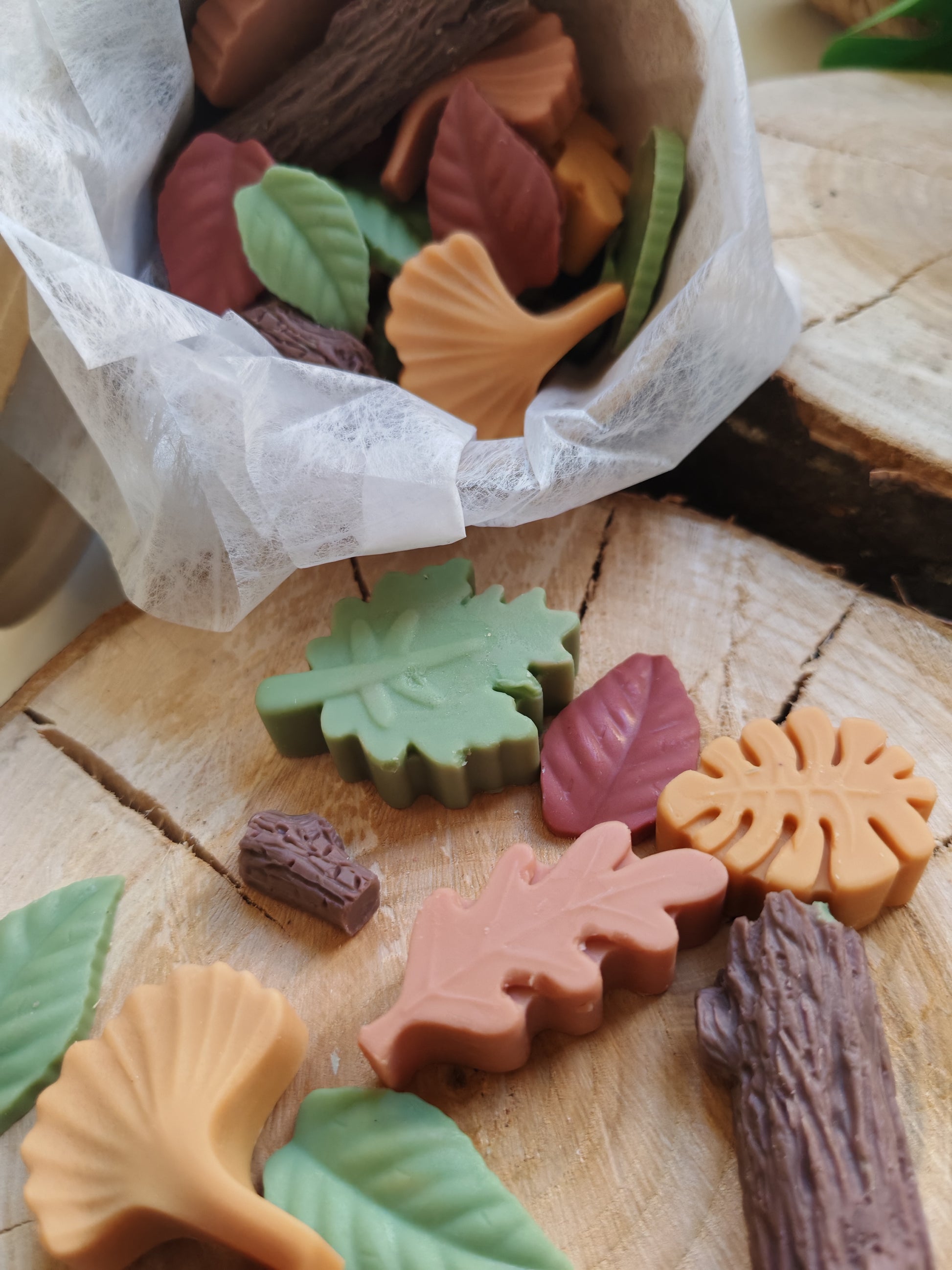 Estos wax melts en forma de ramas y hojas otoñales te envuelven en un aroma amaderado y reconfortante, como si el bosque entero se colara en tu salón.