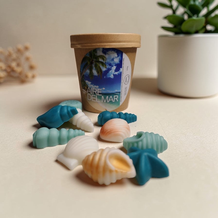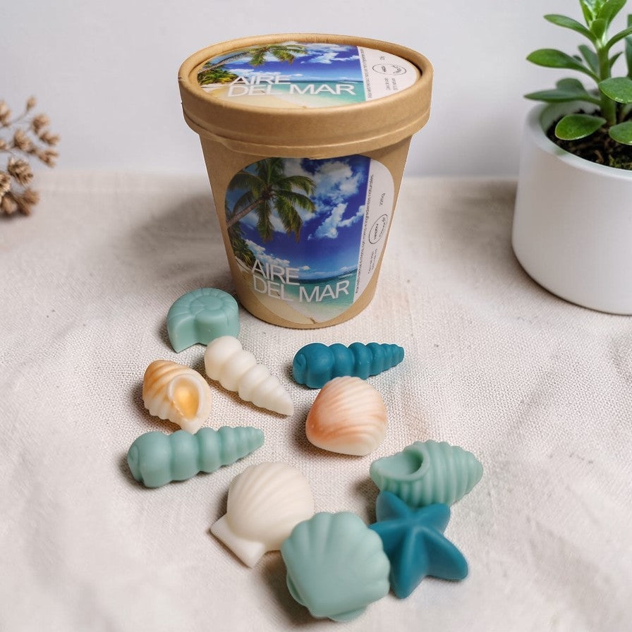 Estos wax melts en forma de conchas y caracolas te envuelven en un aroma limpio, fresco y salado, como un paseo descalzo por la orilla