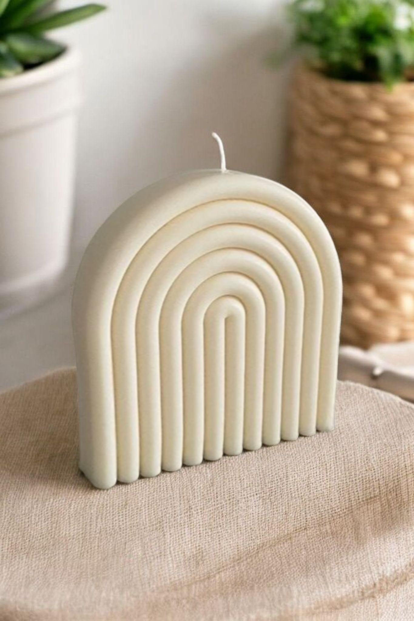 Inspirada en la elegancia de las formas geométricas, la vela Arco XL luce un diseño estilizado con líneas suaves que aportan modernidad y sofisticación a cualquier espacio. Una pieza decorativa ideal para quienes buscan un toque artístico y minimalista en su hogar.