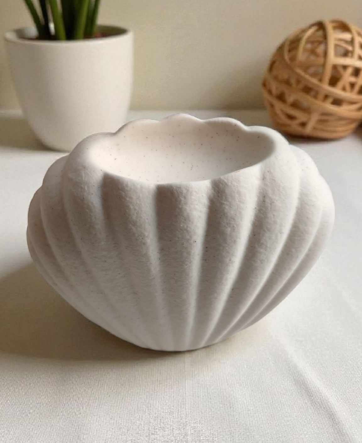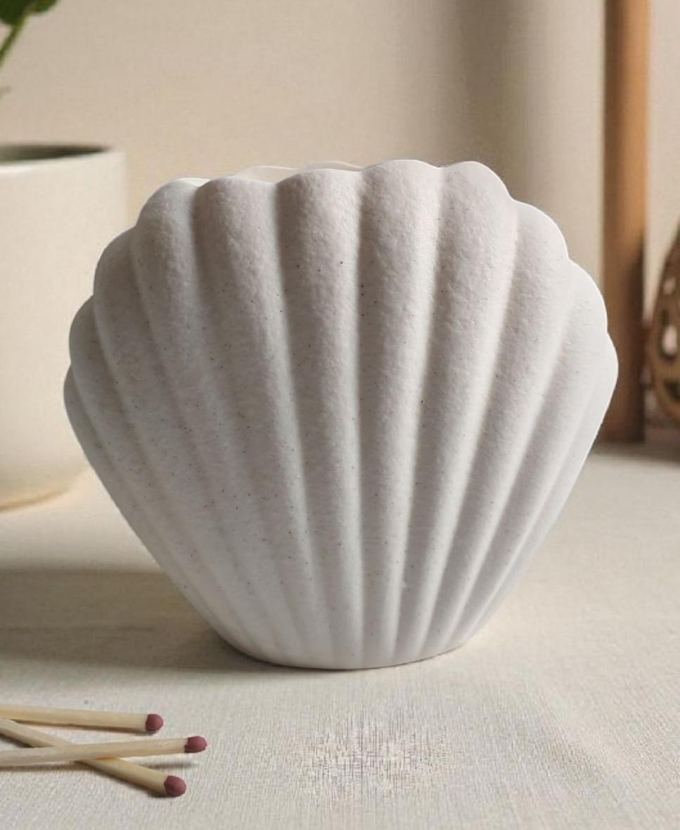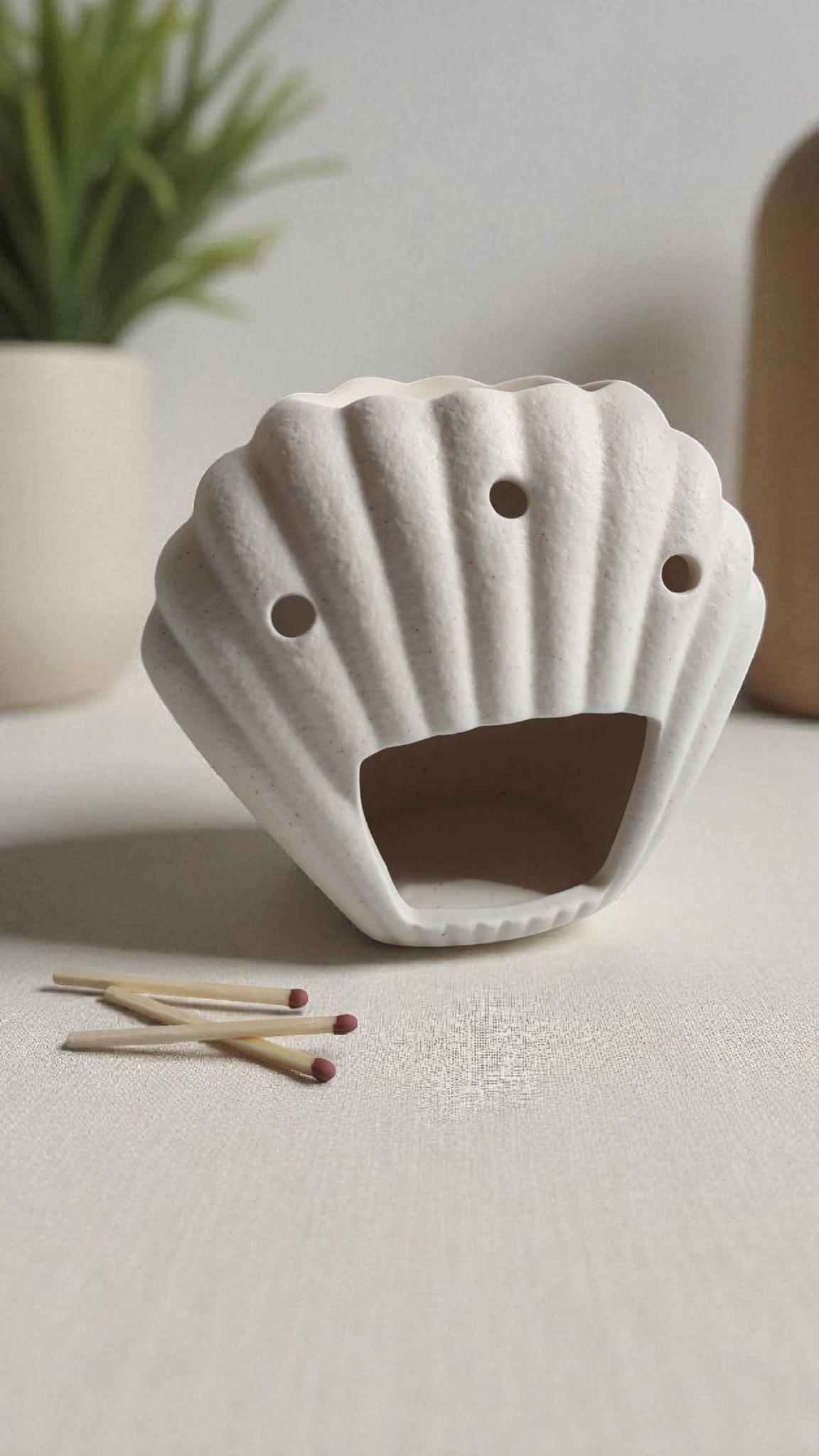 Un quemador de cerámica que combina funcionalidad y arte, pensado para crear un ambiente acogedor y decorativo en cualquier espacio. Su forma de concha aporta armonía y delicadeza, y su acabado natural y rugoso transmite un encanto artesanal y auténtico.