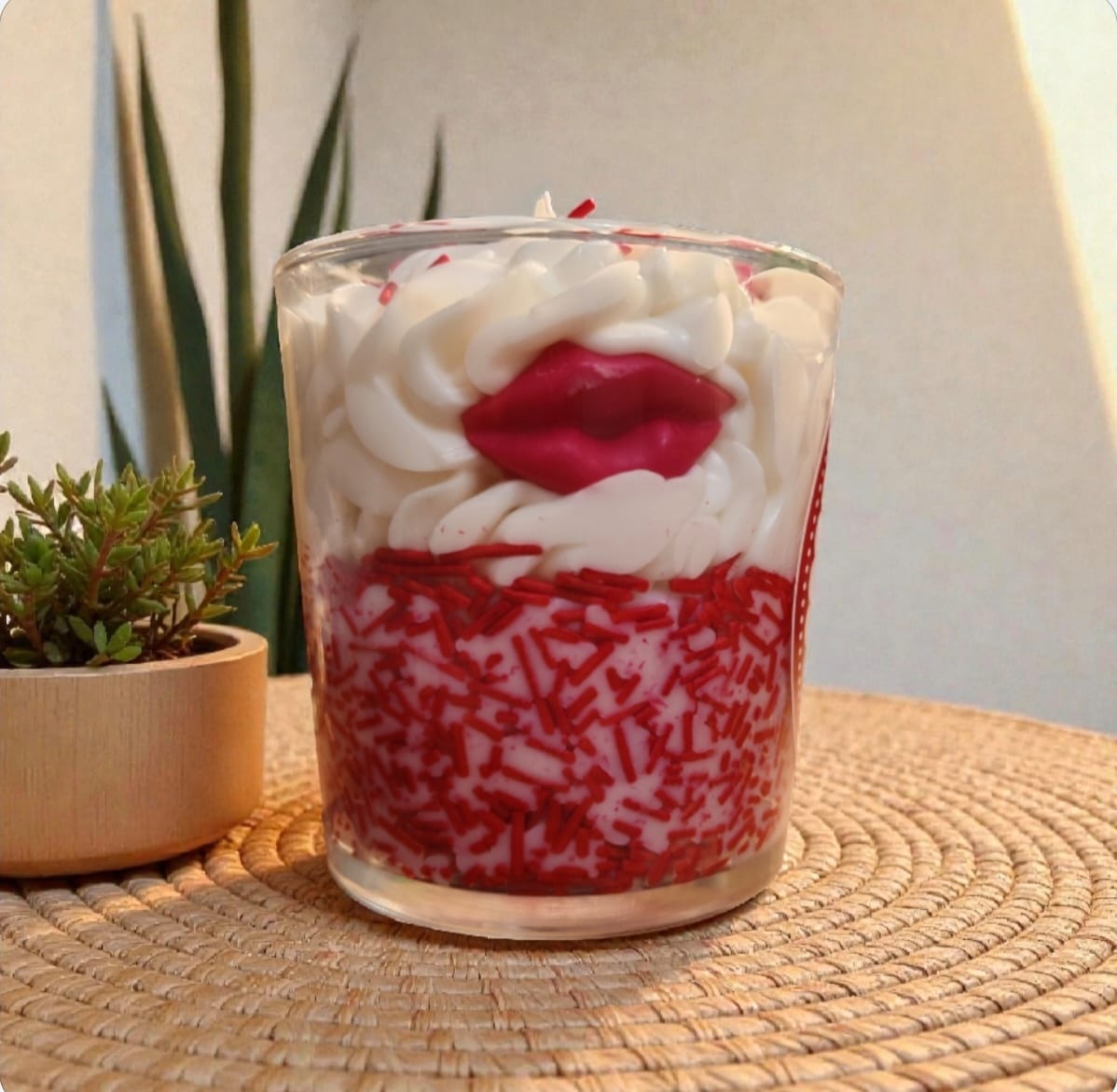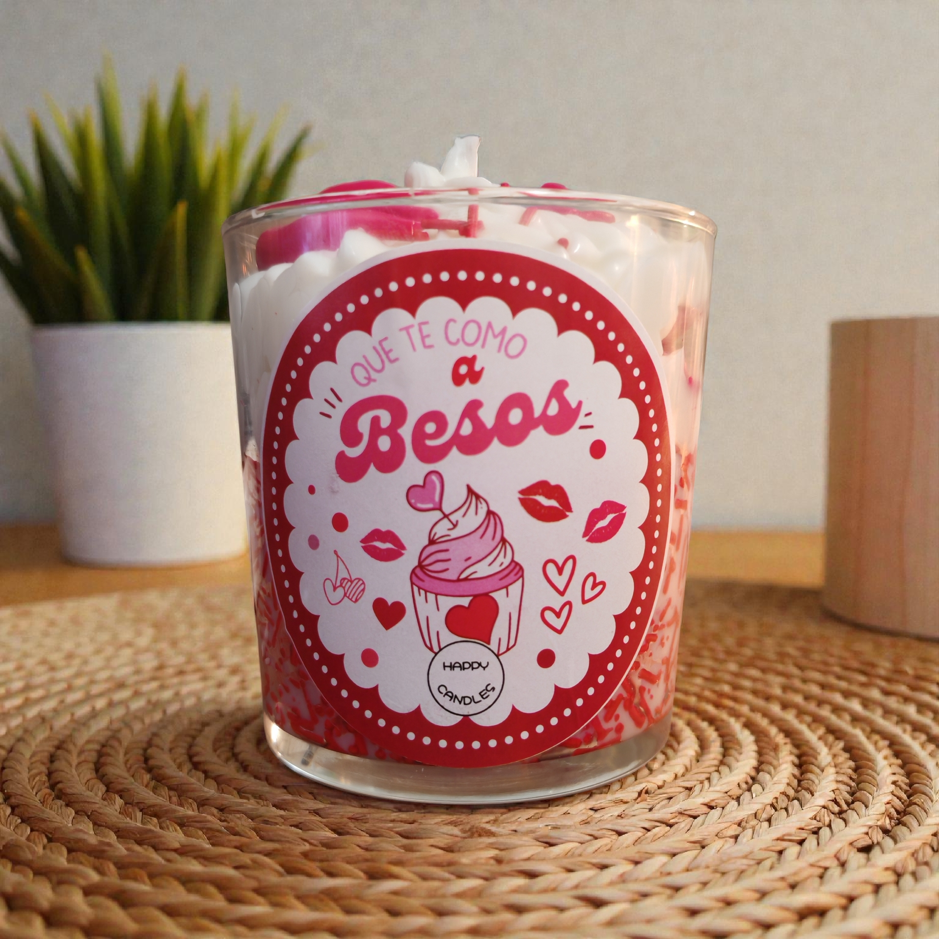 Te como a besos es una vela gourmet creada especialmente para celebrar el amor y los pequeños caprichos que se disfrutan sin prisas. Decorada a mano con besitos de cera, es de esas velas que entran primero por los ojos… y luego por los sentidos.