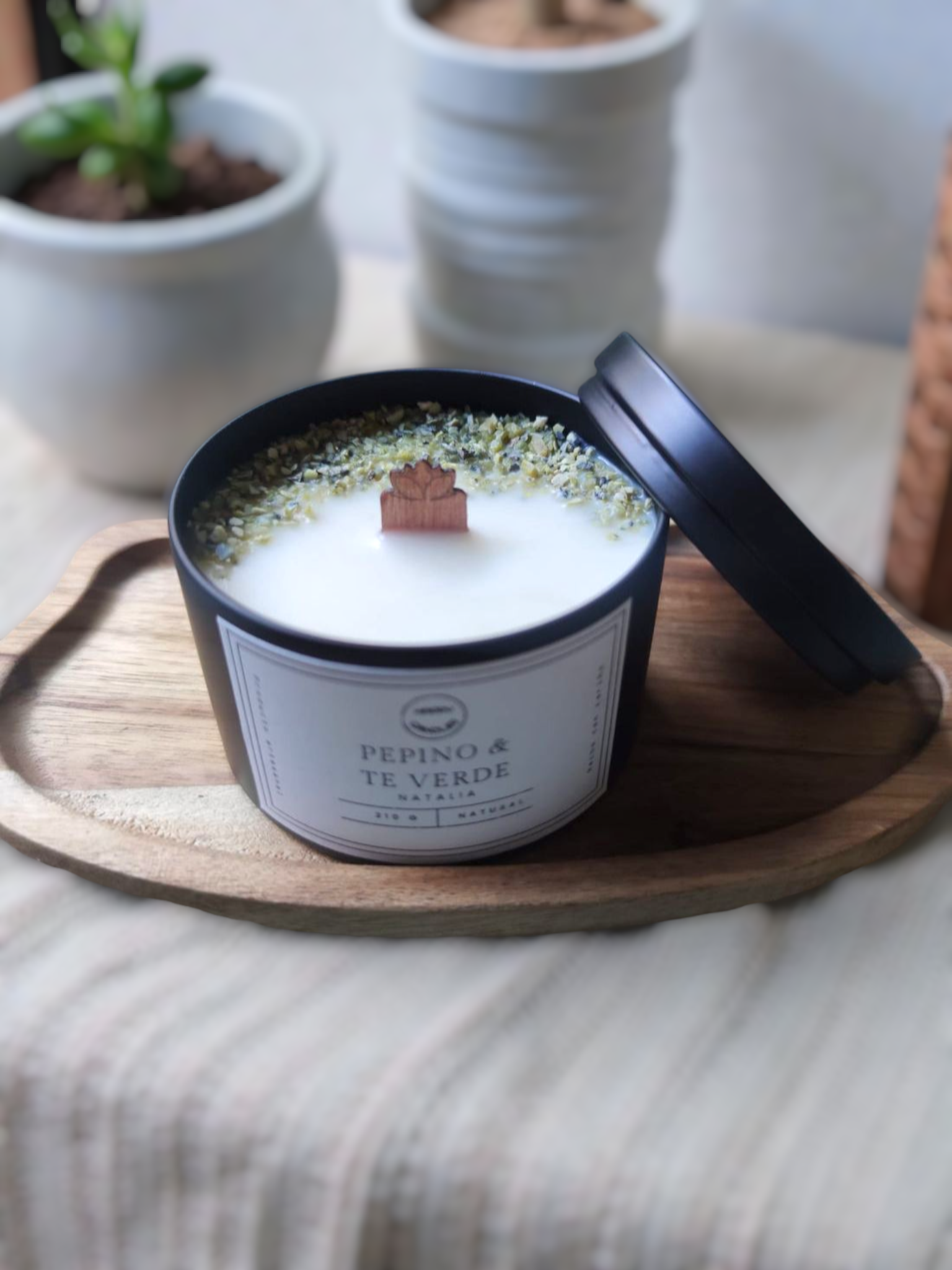 El corazón de la vela, con su nota de jazmín ligeramente amargada por el té verde, refleja la conexión con la tierra y la naturaleza, evocando la sensación de estar rodeado de vida y misterio en un entorno natural. -