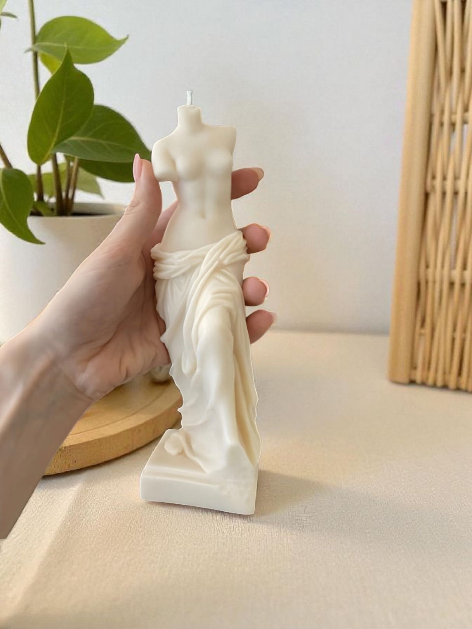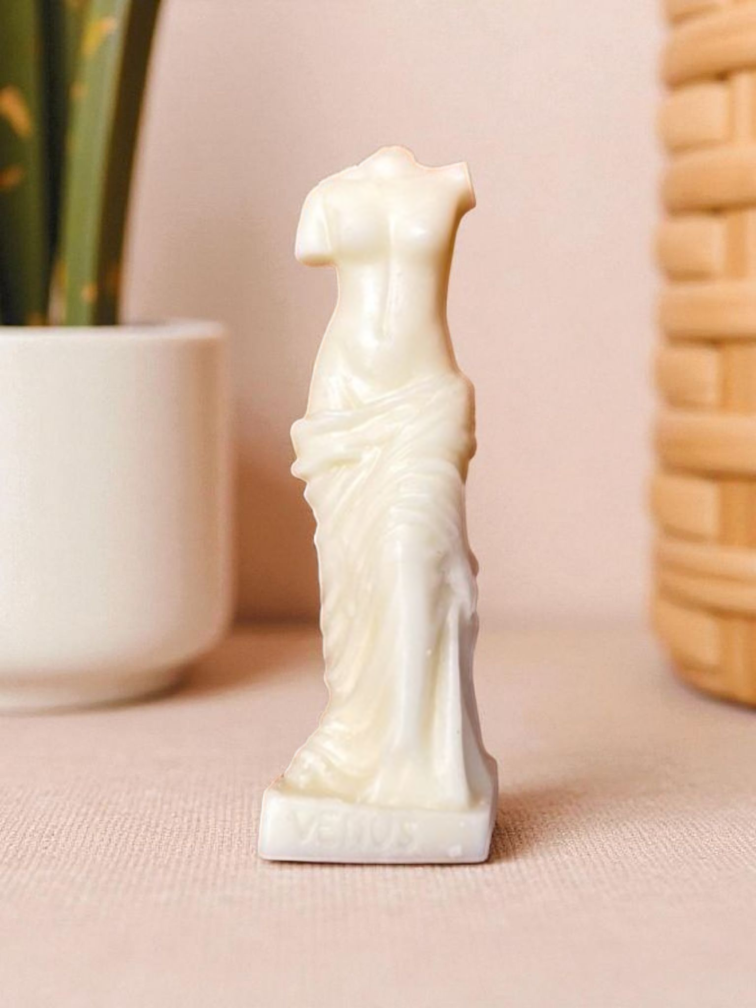 Inspirada en la icónica figura de Venus, esta vela decorativa es sinónimo de elegancia y sofisticación. Su diseño esculpido convierte cualquier rincón en un espacio lleno de estilo, perfecto para quienes aprecian la belleza en cada detalle.